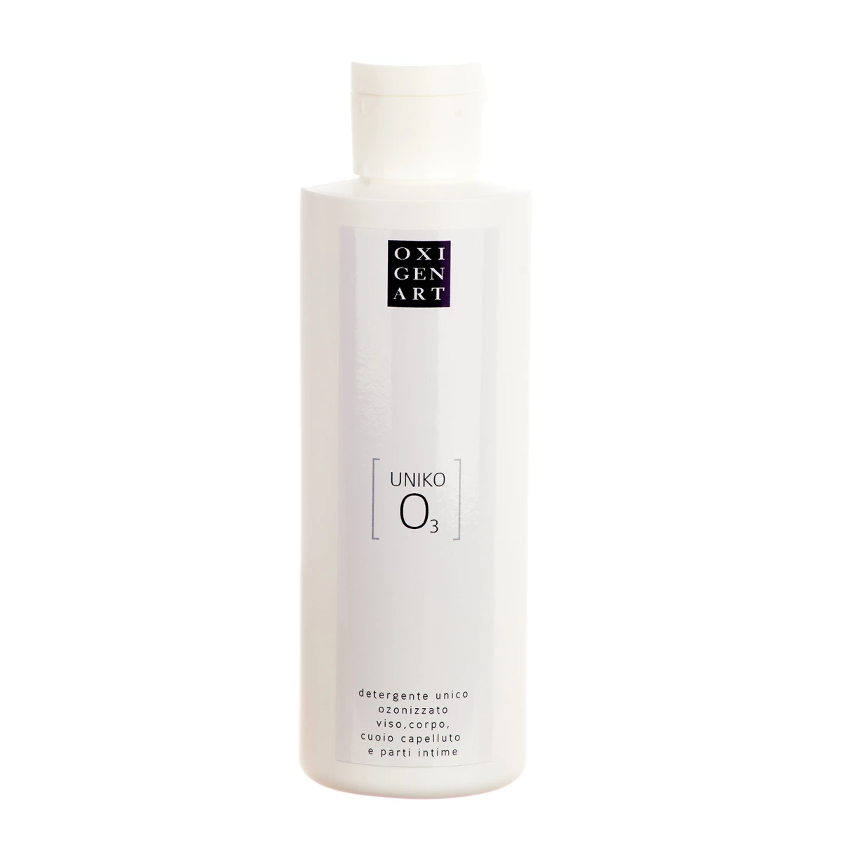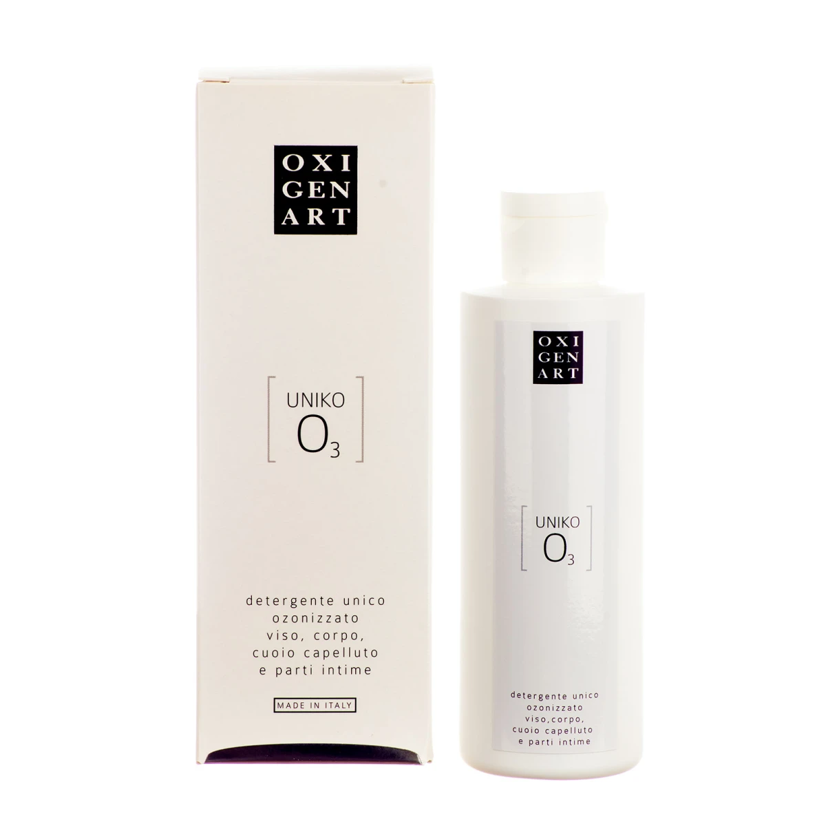 Detergente ozonizzato dal piacevole profumo e dalle proprietà igienizzanti, rivitalizzanti ed ossigenanti. Permette di lavare con dolcezza anche le pelli più sensibili o sensibilizzate da insulti interni od esterni. L’Ozono aiuta a migliorare la circolazione sanguigna e linfatica mentre favorisce il drenaggio dei liquidi in eccesso. UNIKO O3 Consente un lavaggio delicato del cuoio capelluto con una azione cosmetica rinforzante, lasciando i capelli morbidi e lucidi. Perfetto come detergente intimo per la sua azione igienizzante. Il bagno, l’idromassaggio o la doccia all’ozono, rendono la pelle tonica e super idratata. Sul viso, deterge la pelle con la forza delicata dell’ozono.